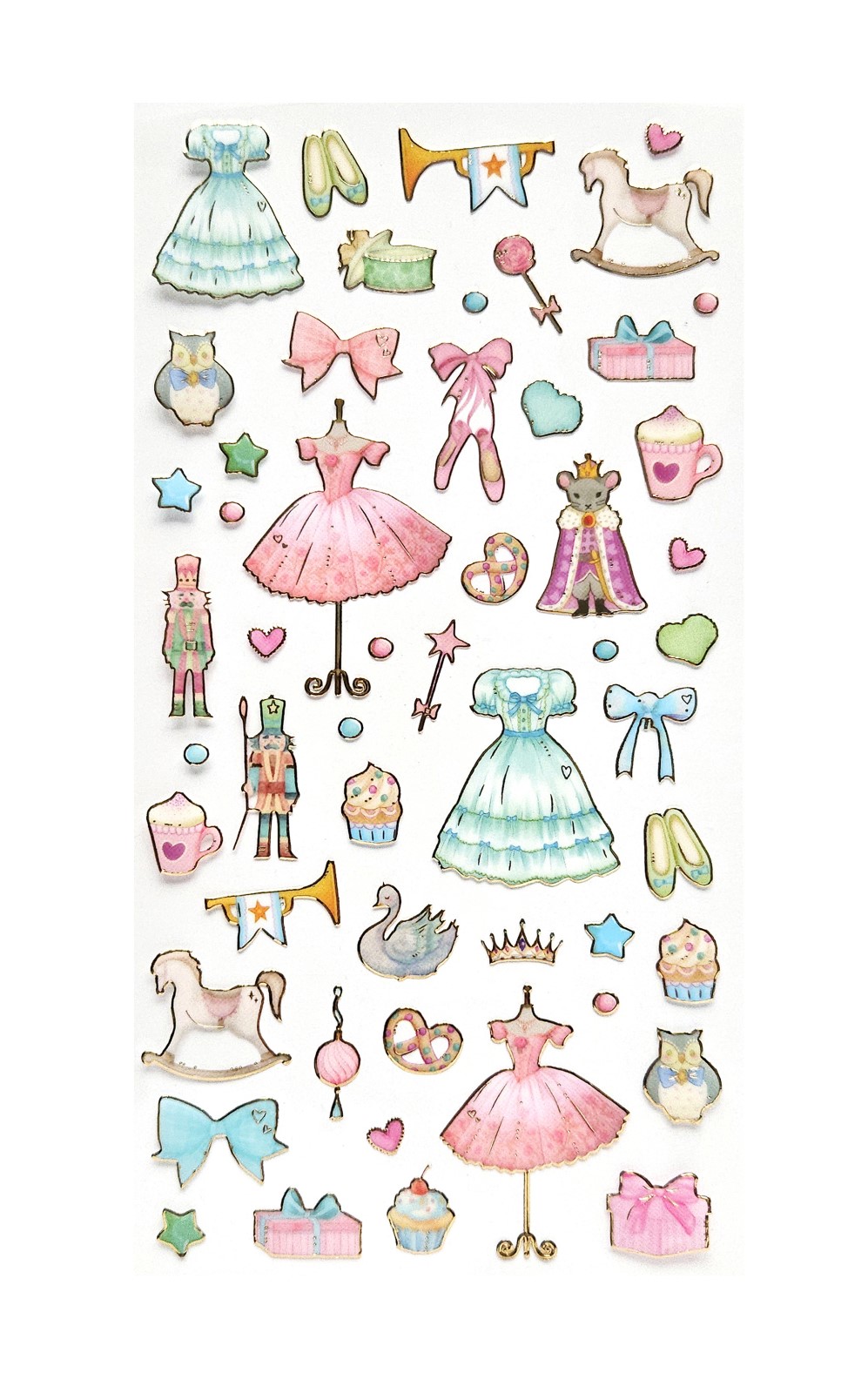• przeźroczyste i lekko wypukłe naklejki w kształcie gwiazdek ze złotą obwódką